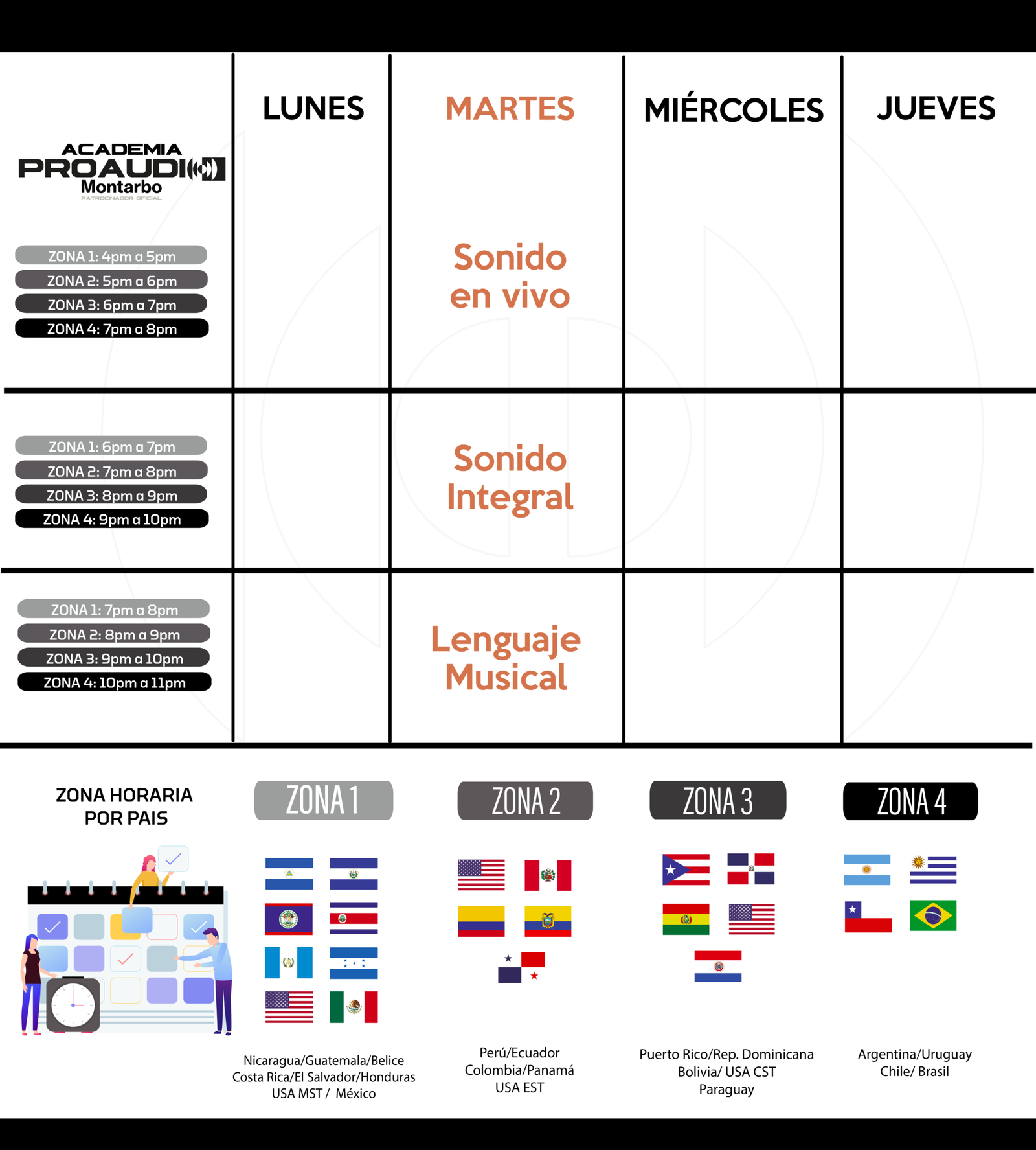 En el classroom encontrarás una grilla HORARIA, donde verás el horario del curso dependiendo de en qué país estés.